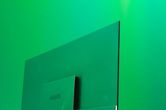 その名も「AQUOS 4K Super Slim」。ディスプレイ部分の厚みはわずか約1.3cmしかありません。 横から見ると、とてもテレビには見えないですよ。