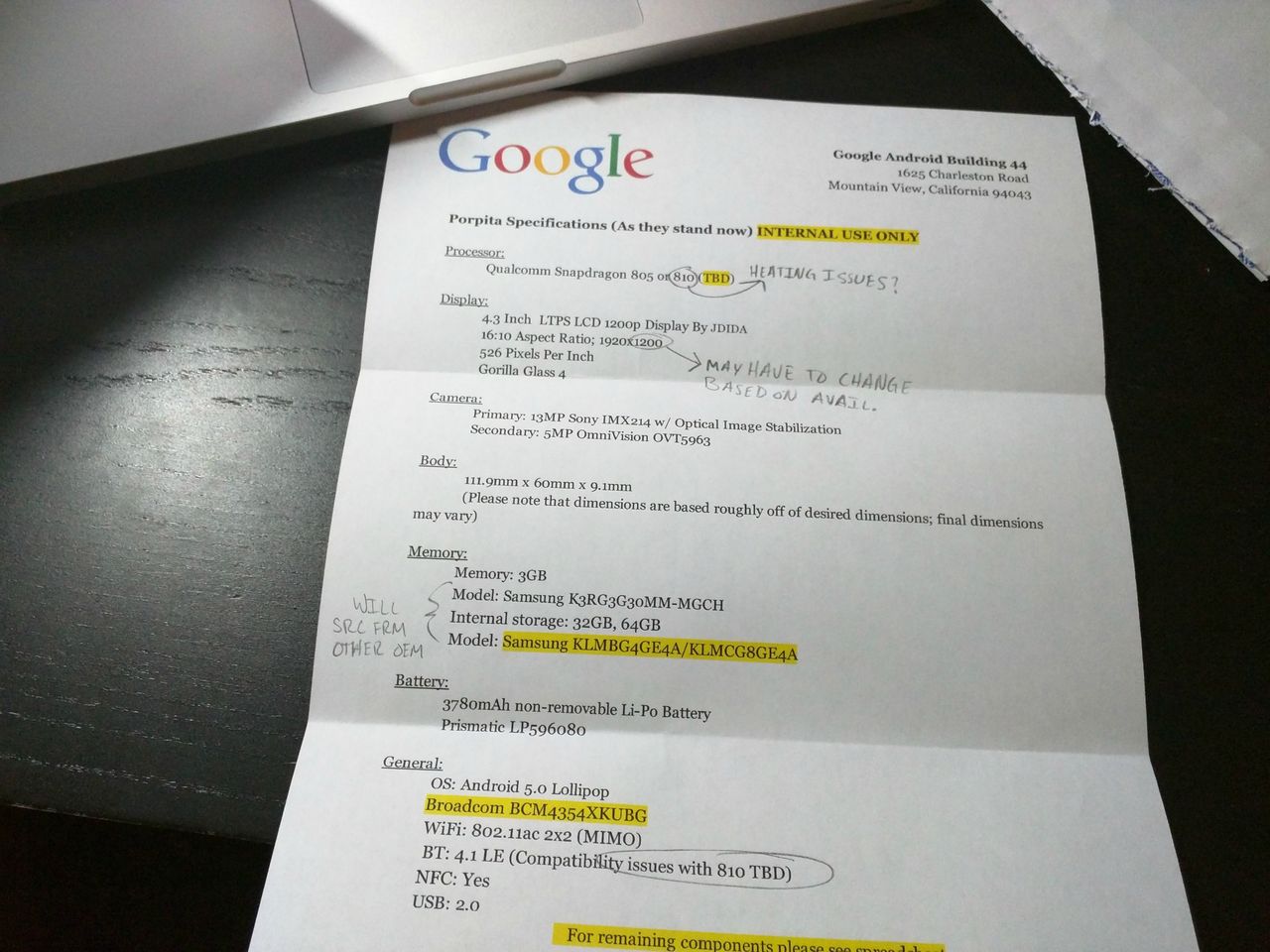 JDI製4.3インチWUXGA(1920×1200)液晶、Snapdragon 810