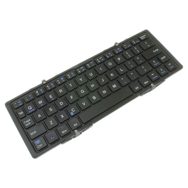 DN-12891は、三つに折りたためて小さくなるBluetoothキーボード。キーボードを開くと自動的に電源がONになり、スマートフォンやタブレットなどのBluetooth機器とペアリングが行える。