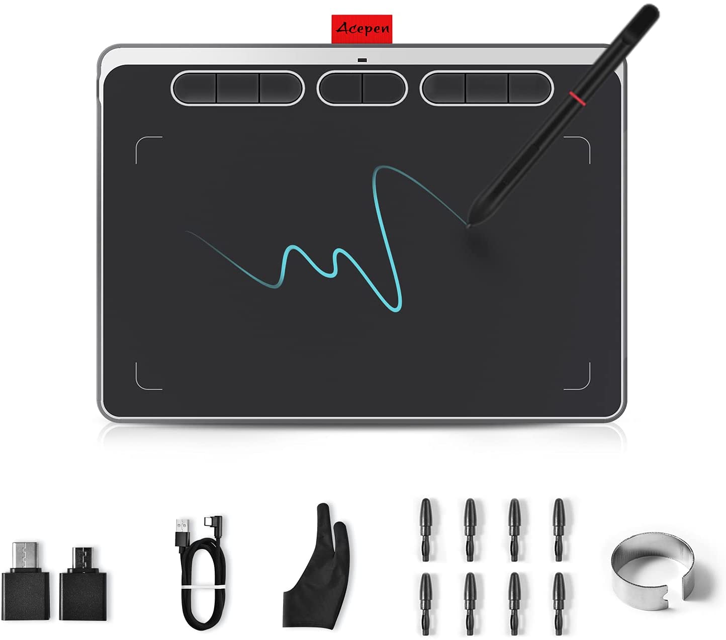 Acepen ペンタブ ハイスペック ペンタブレット 9*5インチ Windows Mac Android対応 8192筆圧 5080LPI解像度 266PPS読取速度 60度傾き検知機能 左利きも対応 エクスプレスキー8個 充電不要ペン 380g軽量 電子イラスト オンライン授業 OSU対応 板タブレット 初心者 子供 二本指グローブ 日本語マニュアル付き AP906