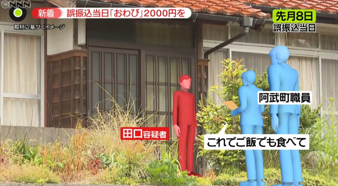阿武町、4630万円誤振込のお詫びに田口容疑者に2000円渡そうとしていたことが判明 田口容疑者は受け取り拒否
