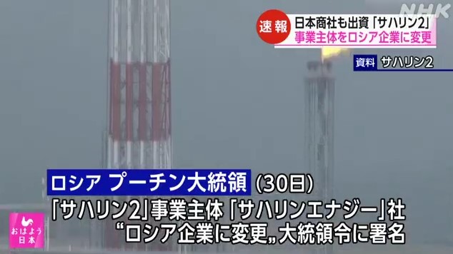 【速報】 ロシア大統領は、日本勢が参加するサハリン沖の石油・天然ガス開発事業「サハリン2」の 運営会社をロシア企業に変更するよう命じる大統領令に署名した。現地メディアが報じた(時事)