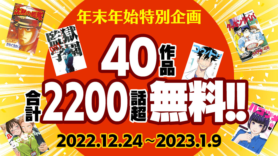 漫画サイト「年末年始特別企画 40作品合計2200話無料公開!」 ワイ「すげぇ!」