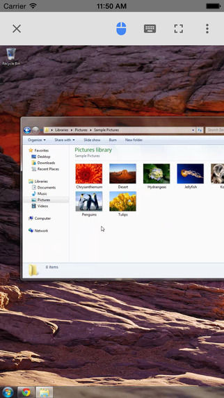 このアプリでログインすると、普通に接続先のPCのデスクトップが立ち上がります、モニタもスリープから目覚めます。