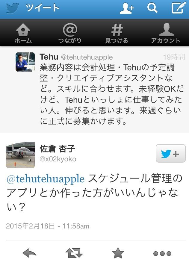 @tehutehuapple: 業務内容は会計処理・Tehuの予定調整・クリエイティブアシスタントなど。