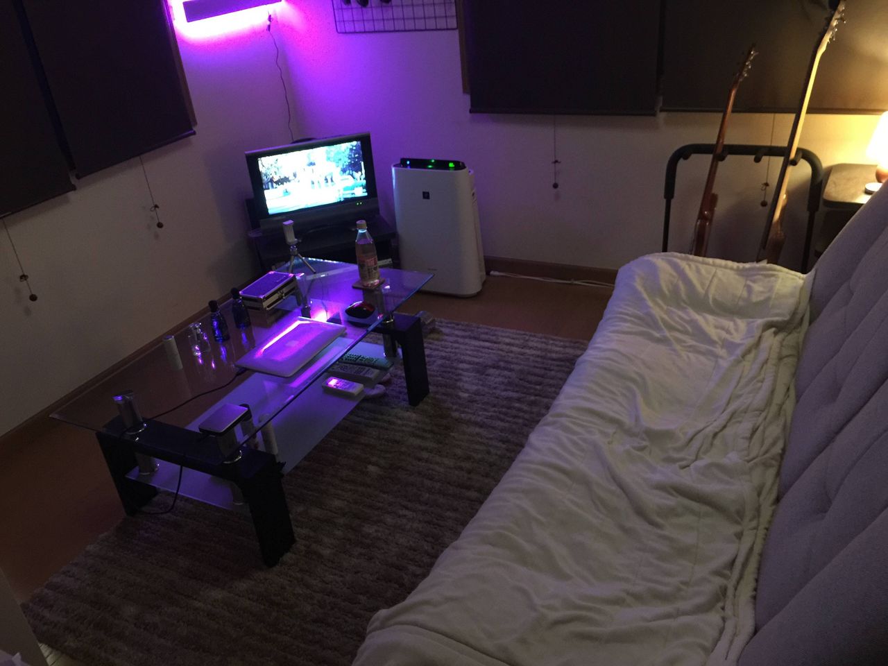 ガラステーブルの下にごちゃごちゃ見えてるのがいやん