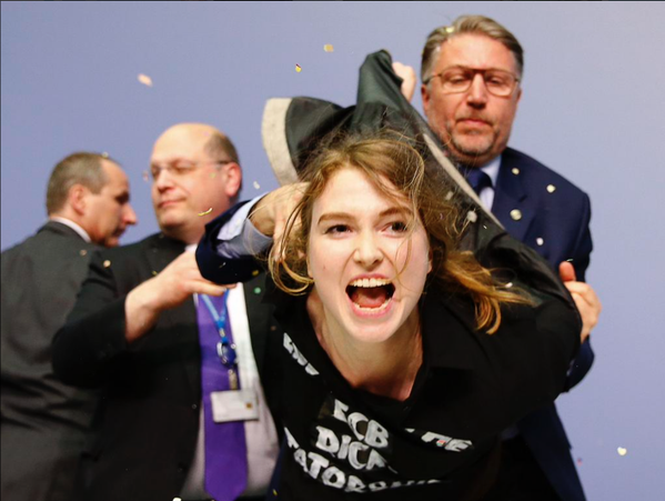 屋内で会見の席だから記者のカメラの設定はフラッシュオートで多分SS1/200程度だと思う。