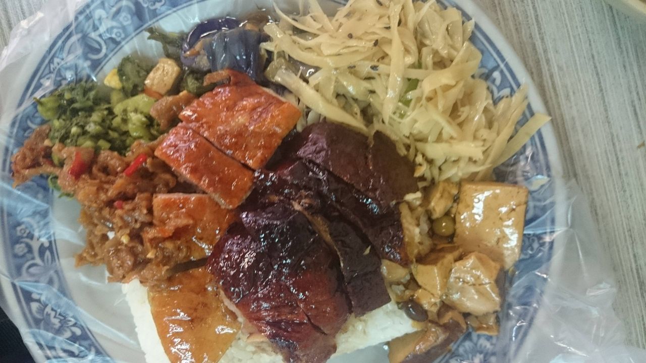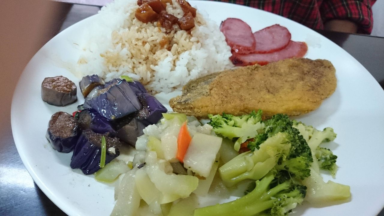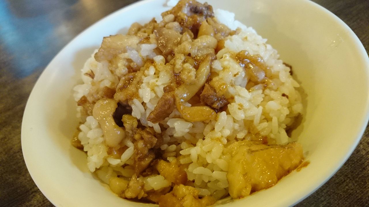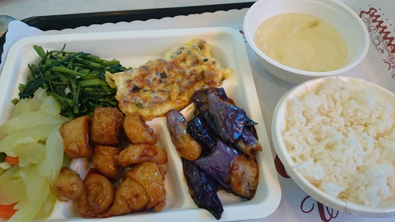 温かい豆乳に揚げパンと肉ふりかけ、あと漬け物のようなものが入った台湾ではポピュラーな朝ごはん