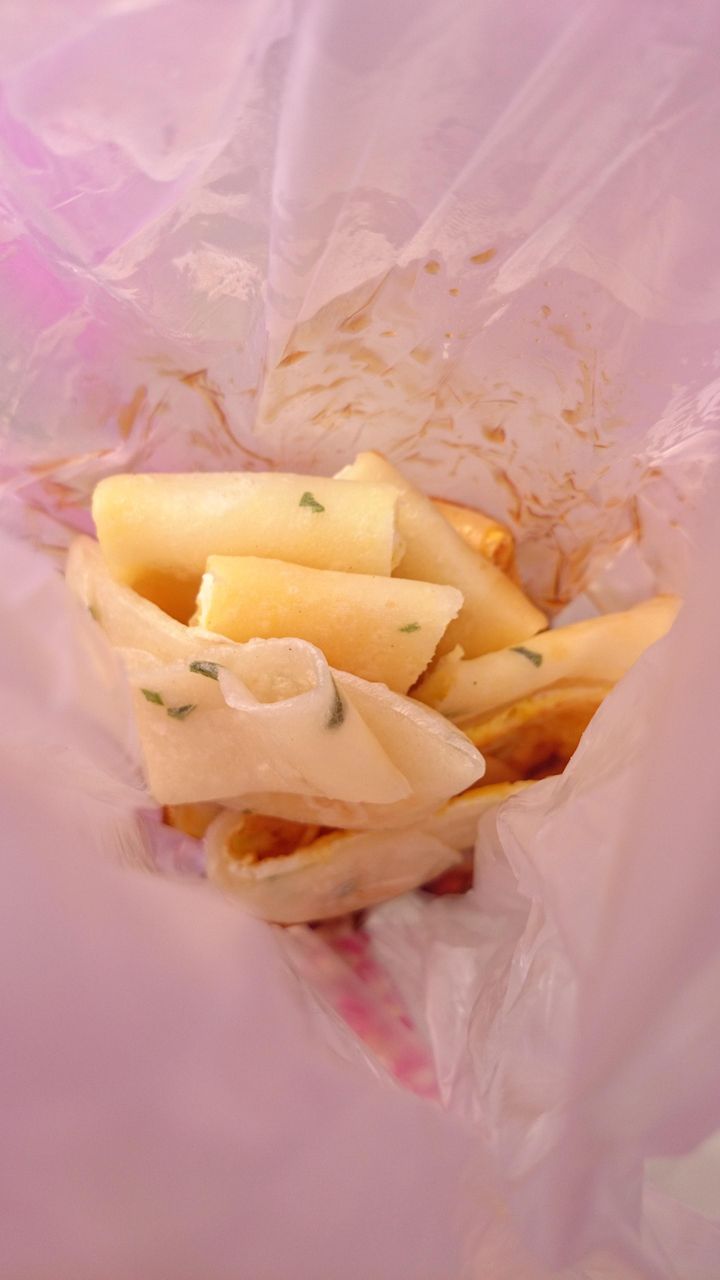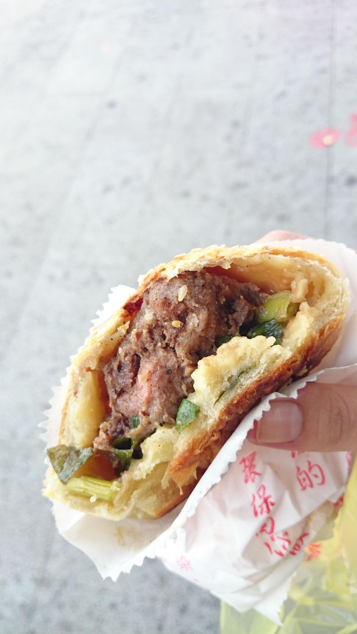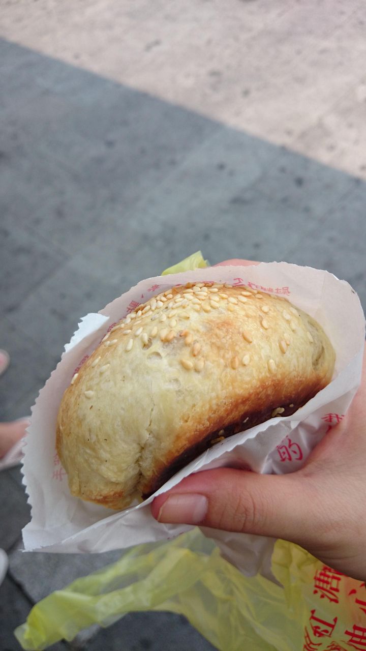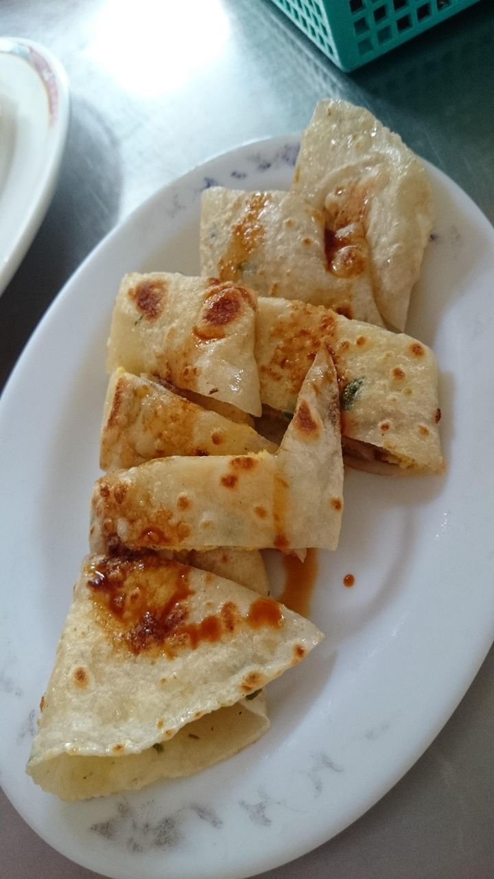 ?抓餅つぉんつぁぴん 小麦粉のパイ生地に卵を落としたもの。