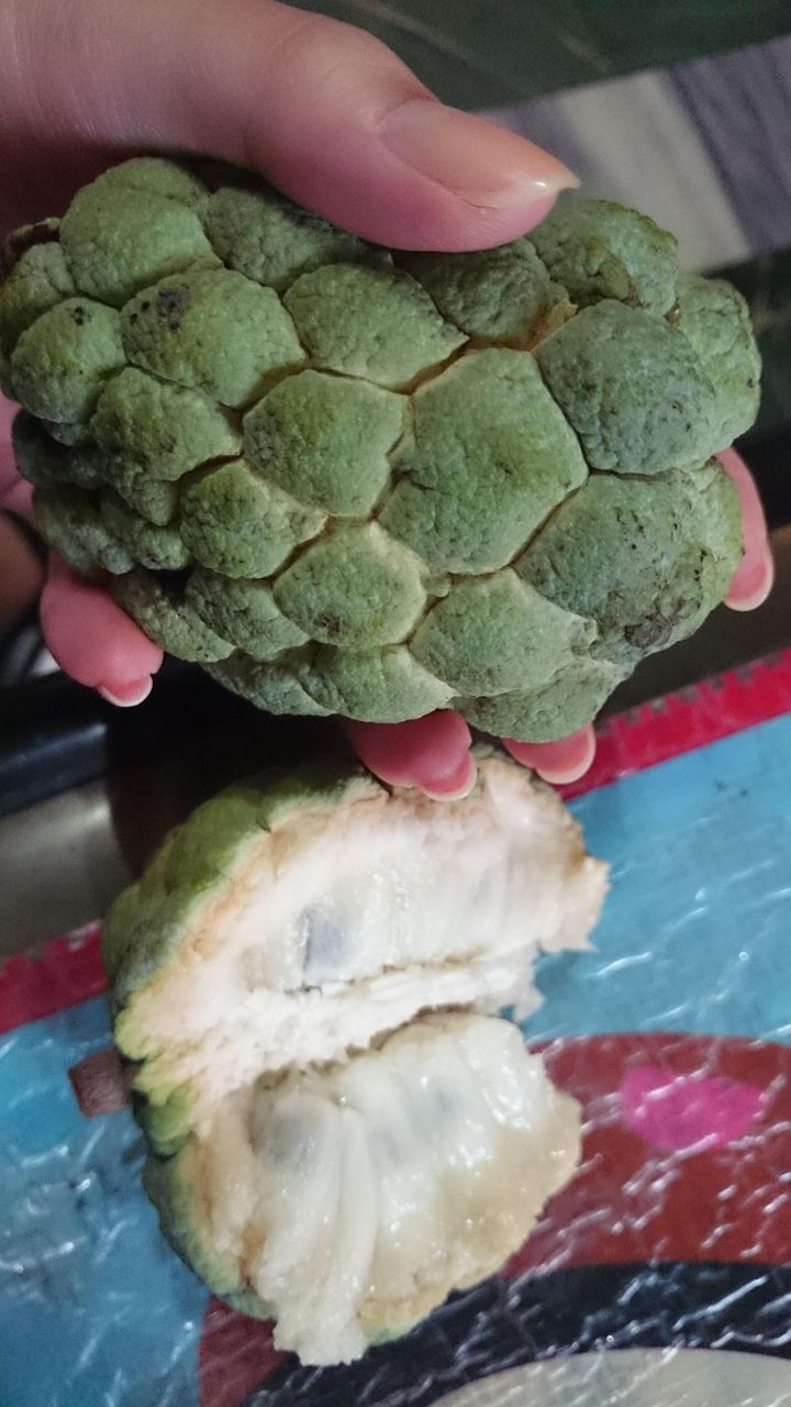 お釈迦様の頭に似てるから。スナックパインのように食べるよ!味はなんとも言えないおいしさ