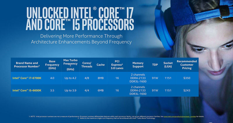 発表されたのは「Intel Core i7-6700K」と「Intel Core i5-6600K」のデスクトップ向けの2モデルです。