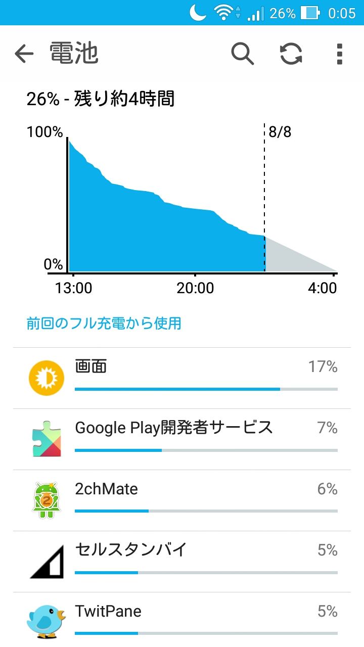 バッテリーの消費はこんなもん。