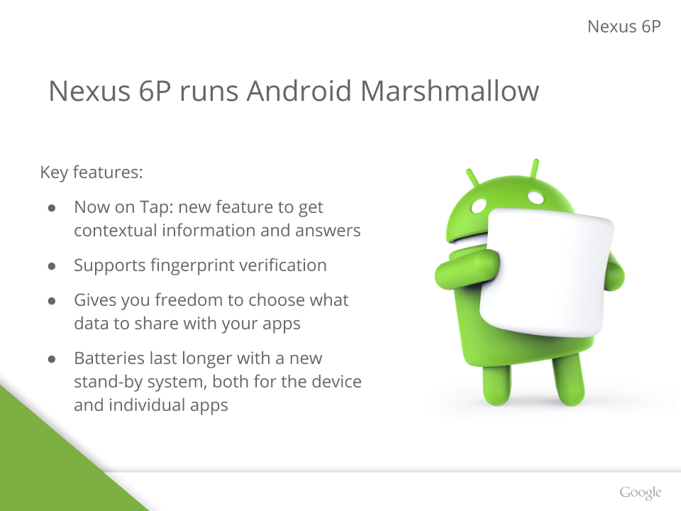 Googleが9月29日に発表するHuawei製のNexusスマートフォン「Nexus 6P」のプレゼンテーション資料のスクリーンショットがimgurに投稿されていました。