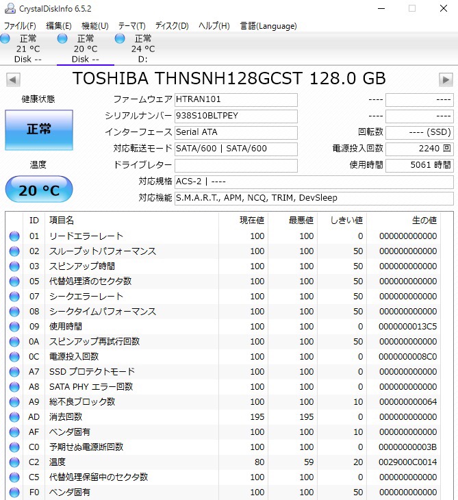SSD CFD 128GB×2 RAID0でCドライブ 保証残り1年