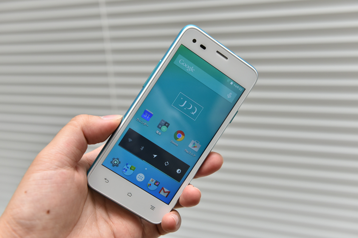 「UPQ Phone A01」からの変更点は、ボディカラーのラインナップに「ブルー・バイ・グリーン」の前面側をホワイトにした「ホワイトBG」が追加されたほか、内蔵ストレージが8GBから16GBに変更、液晶下部に配置された3つのキーは配置が変更されており、バックキーが左側になっています。また、タッチパネルはG+FFとなり、マルチタッチが5点タッチになっています。