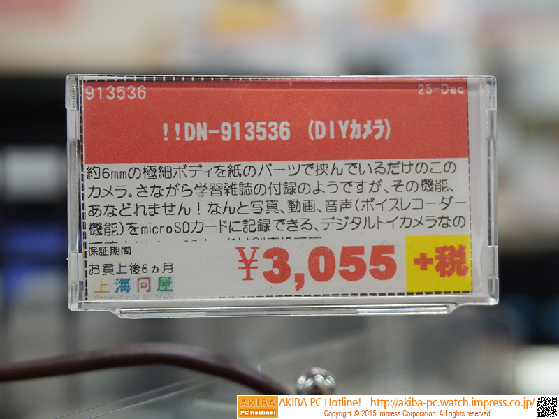 紙のように薄いデジタルカメラ「紙みたいなデジタルカメラ(DN-13536)」が上海問屋から発売されました。店頭価格は税込3,299円。
