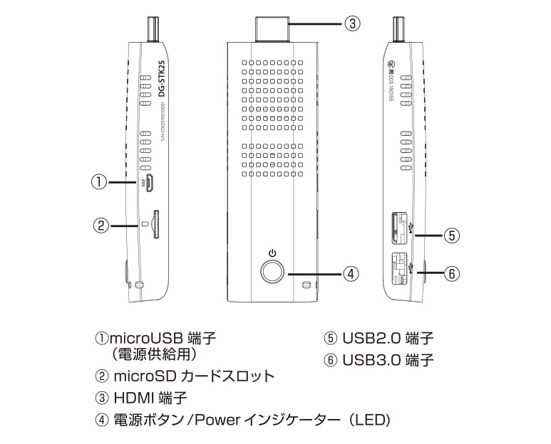 「Diginnos Stick DG-STK2S」の主要スペックは、Atom x5-Z8300(1.44GHz・クアッドコア)、メモリ2GB、ストレージ 32GB(eMMc)、USB3.0、USB2.0、Micro USB(給電用)、microSDカードスロット、HDMI出力、日本電産コパル製の冷却ファン、Windows 10 Homeなどを搭載。