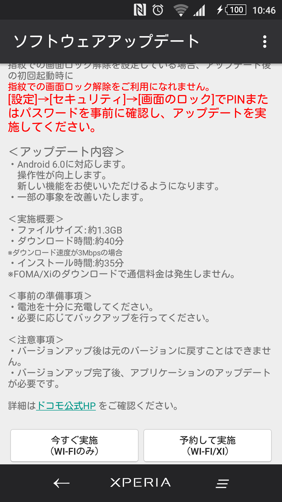 更新は端末単体(3G/LTE/Wi-Fi)で行う。3G/LTEを利用した更新には、spモードの契約があるドコモのSIMカードが必要。パソコンを用いた更新方法も、後日提供される。