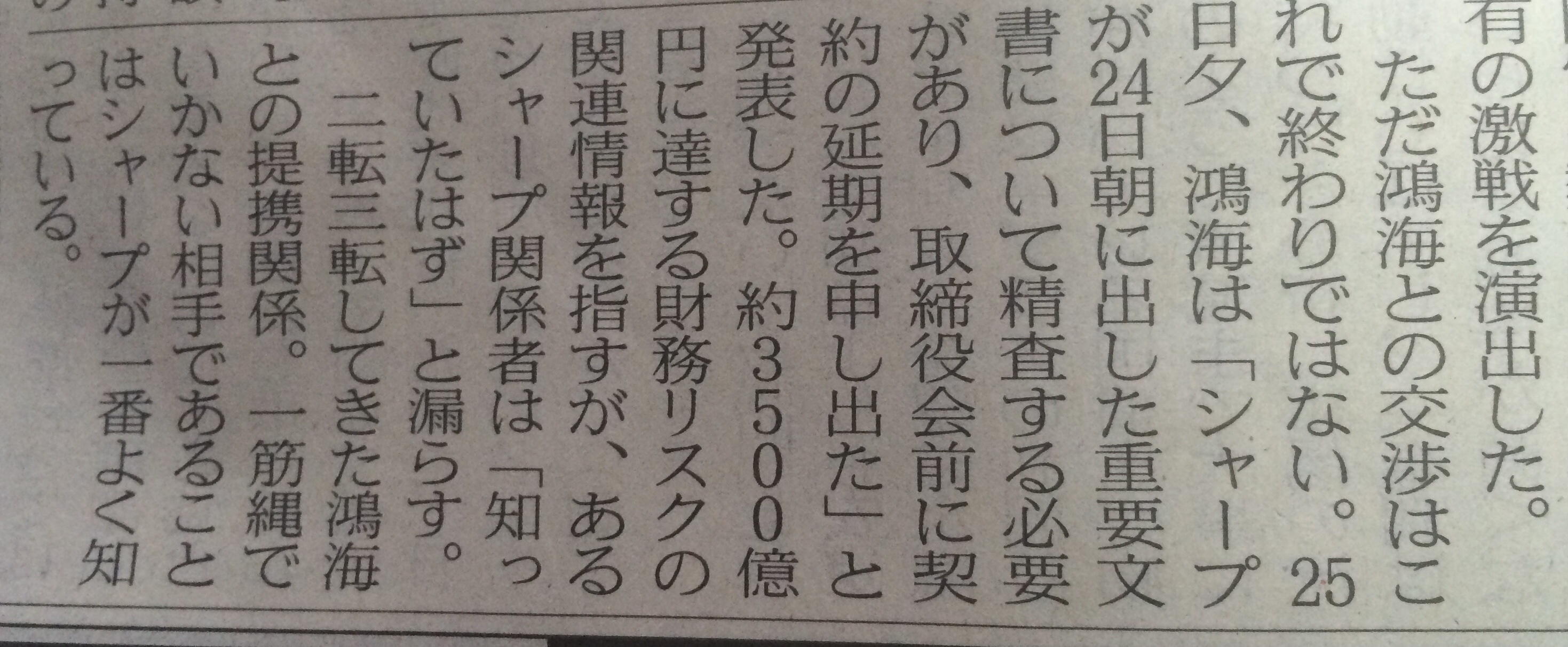 シャープ「(マスコミに)あっちは財務リスクについて知ってたはず。いまさら契約延期とかズルいぃ!!(白目)」
