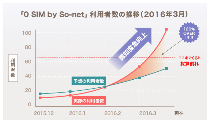 「0 SIM」最初の事務手数料に必要な3,000円(税込3,240円)以外、500MB以下の回線使用量の場合は一切の利用料金がかからないSIMカード(※ データ専用プランの場合)として、多くのユーザーの皆様から反響をいただき、おかげさまで利用者数も右肩あがりでした。