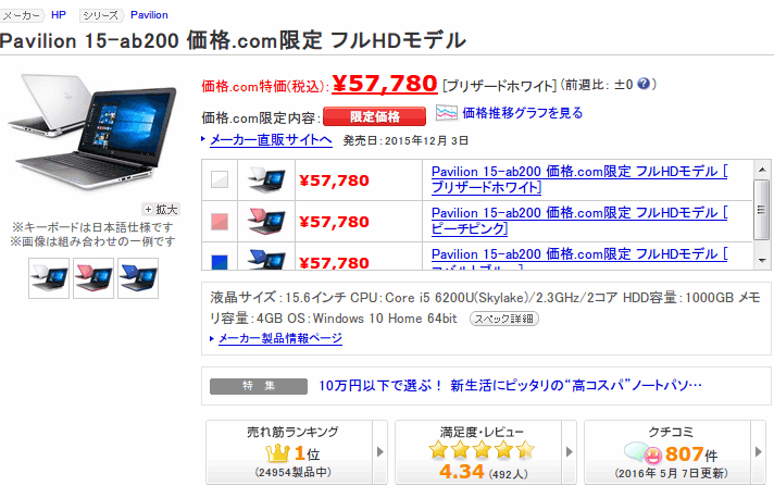 価格.comで他のノートパソコン見てみろよフルHDのなんて全然ないから