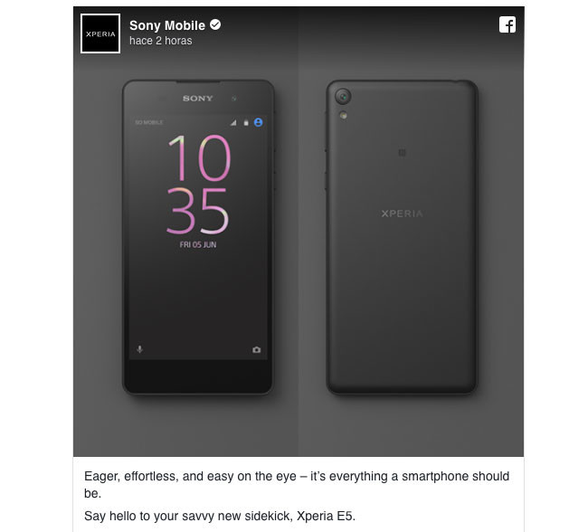 Sony Mobileは本日、自社のFacebookとTwitterで新型のAndroidスマートフォン「Xperia E5」の画像を公開しました。