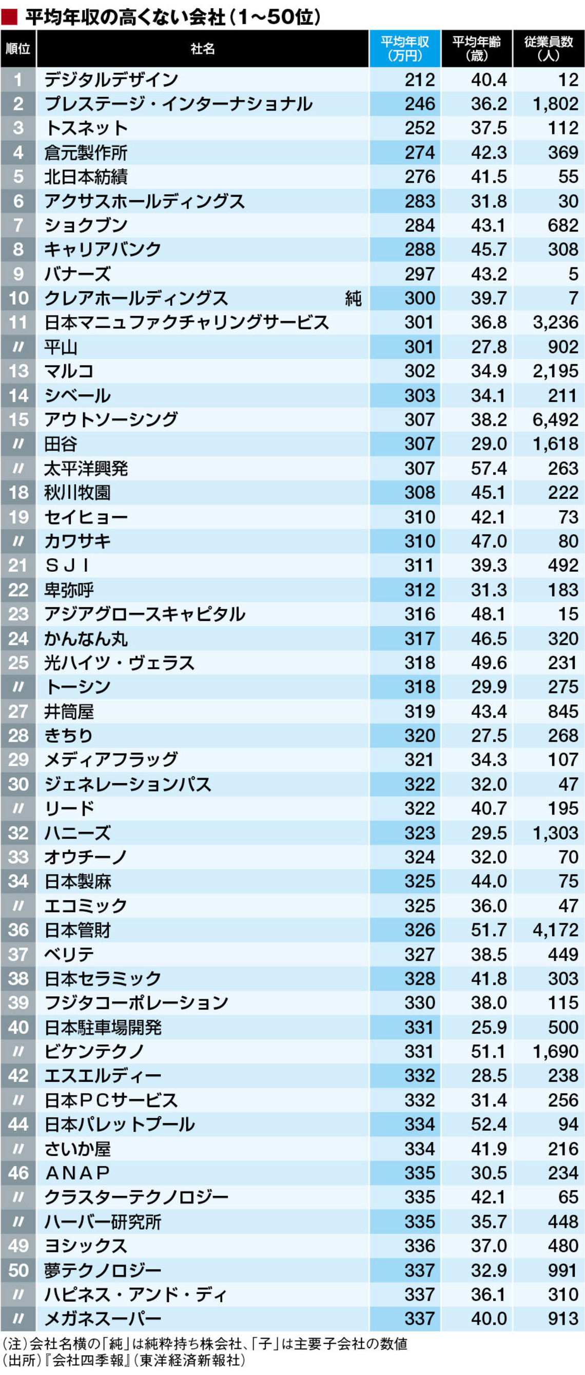 平均年収ワースト500社ランキング 300万円未満は9社、400万円未満も200社超