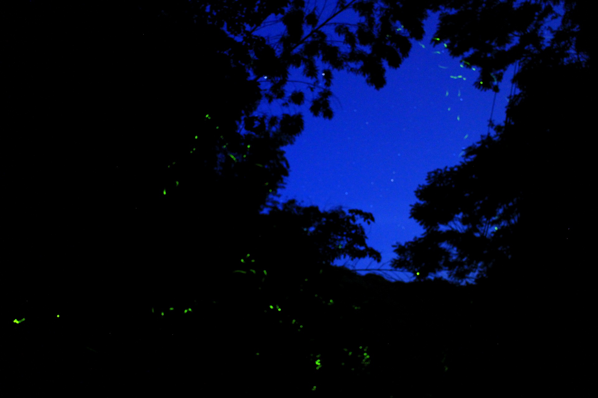 よく見る蛍の乱舞みたいな写真は複数枚を比較明合成してるから、一枚撮りでは中々撮れないよね
