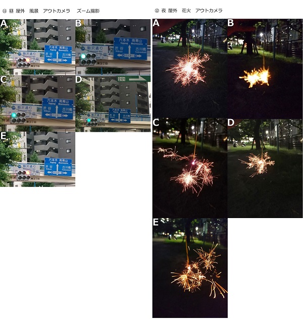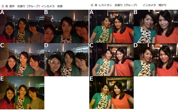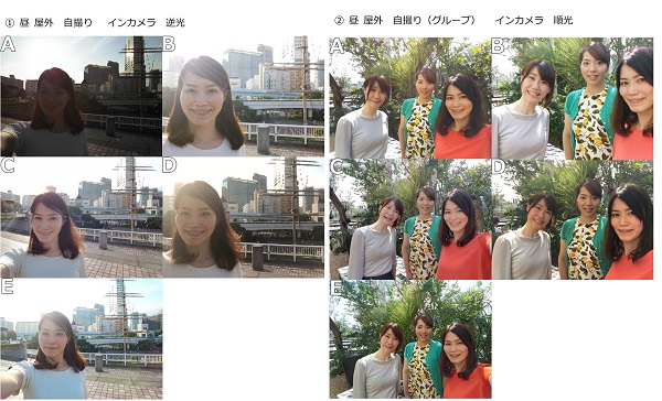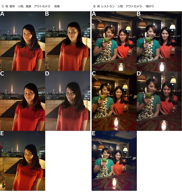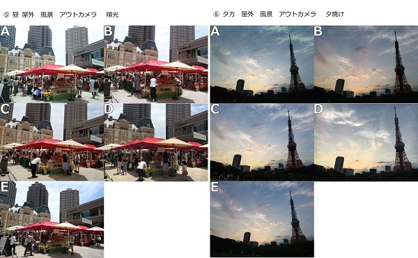 撮影シーンは、第1弾調査でよく撮影するシーン上位になった「人物、風景、料理の写真」、うまく撮影できないシーン上位の「夜景、逆光」、端末に求める機能で上位の「ズームしても画像が荒くならない機能、暗がりでもキレイに撮れる機能」といった、ユーザーが気になるシチュエーションを取り上げた。撮影端末は「AQUOS ZETA SH-04H」「arrows NX F-02H」「Galaxy S7 edge SC-02H」「iPhone 6s」「Xperia X Performance SO-04H」。