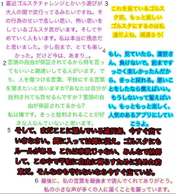 なおゴルスタ内ではこのような怪文書が出回っている模様