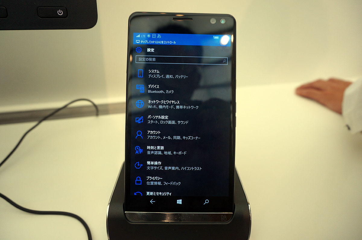 「HP Elite x3」は、5.96インチ(2560 × 1440・AMOLED・ゴリラガラス4)、Snapdragon 820、RAM 4GB、ストレージ64GB、背面に1600万画素カメラ、前面に800万画素カメラ、4150mAhバッテリー、USB Type-C、B&Oステレオスピーカー、Windows 10 Mobileなどを搭載。