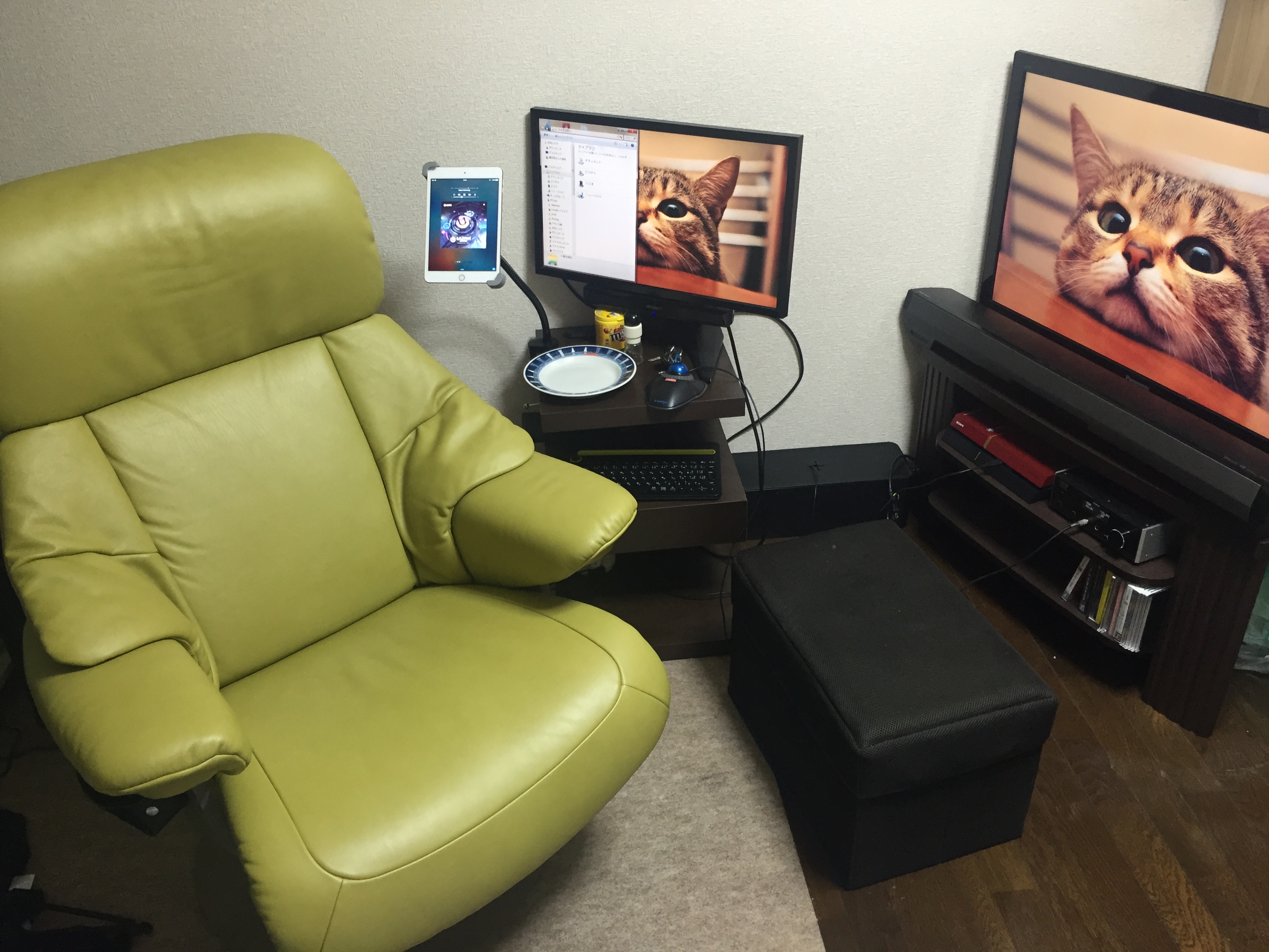 自分も机ありきに考えていたのでよもやこうなるとは思ってませんでしたw椅子に座ってゴロゴロしたいと思った結果こうなりました。