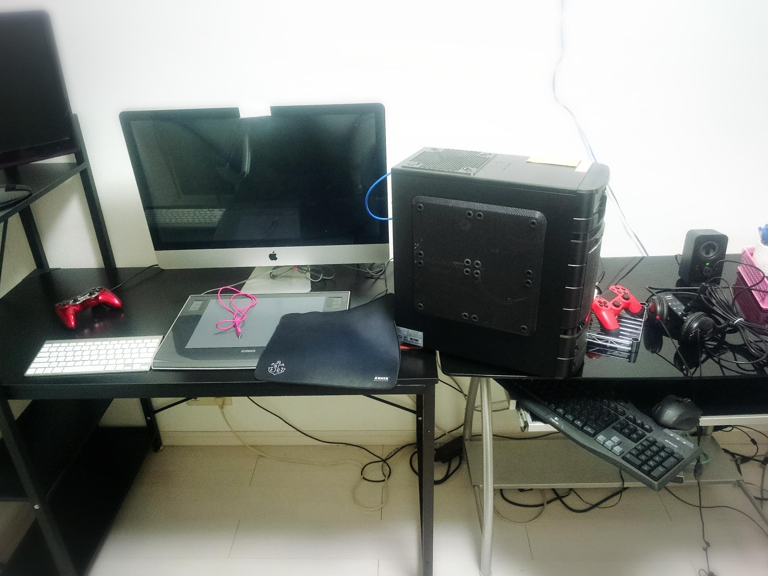 そもそもどっちのデスクにどっちのパソコン置くかから考えないと
