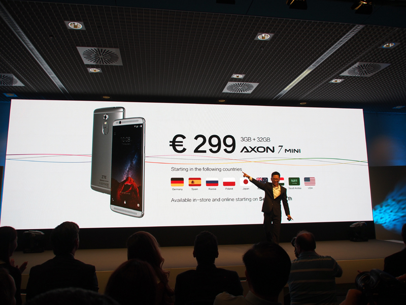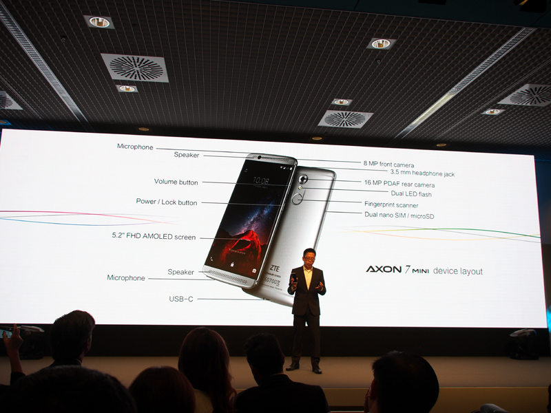 AXON 7 mini、5.2インチ(1920 × 1080・AMOLED)、Snapdragon 617、RAM 3GB、ストレージ 32GB、背面カメラは1600万画素、インカメラは800万画素、2705mAhバッテリー、Hi-Fiチップ「AK4962」搭載http://k-tai.watch.impress.co.jp/docs/event/ifa2016/1018042.html