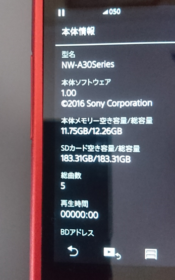 WALKMAN NW-A30(A35) interface responce (firmware version 1.00)