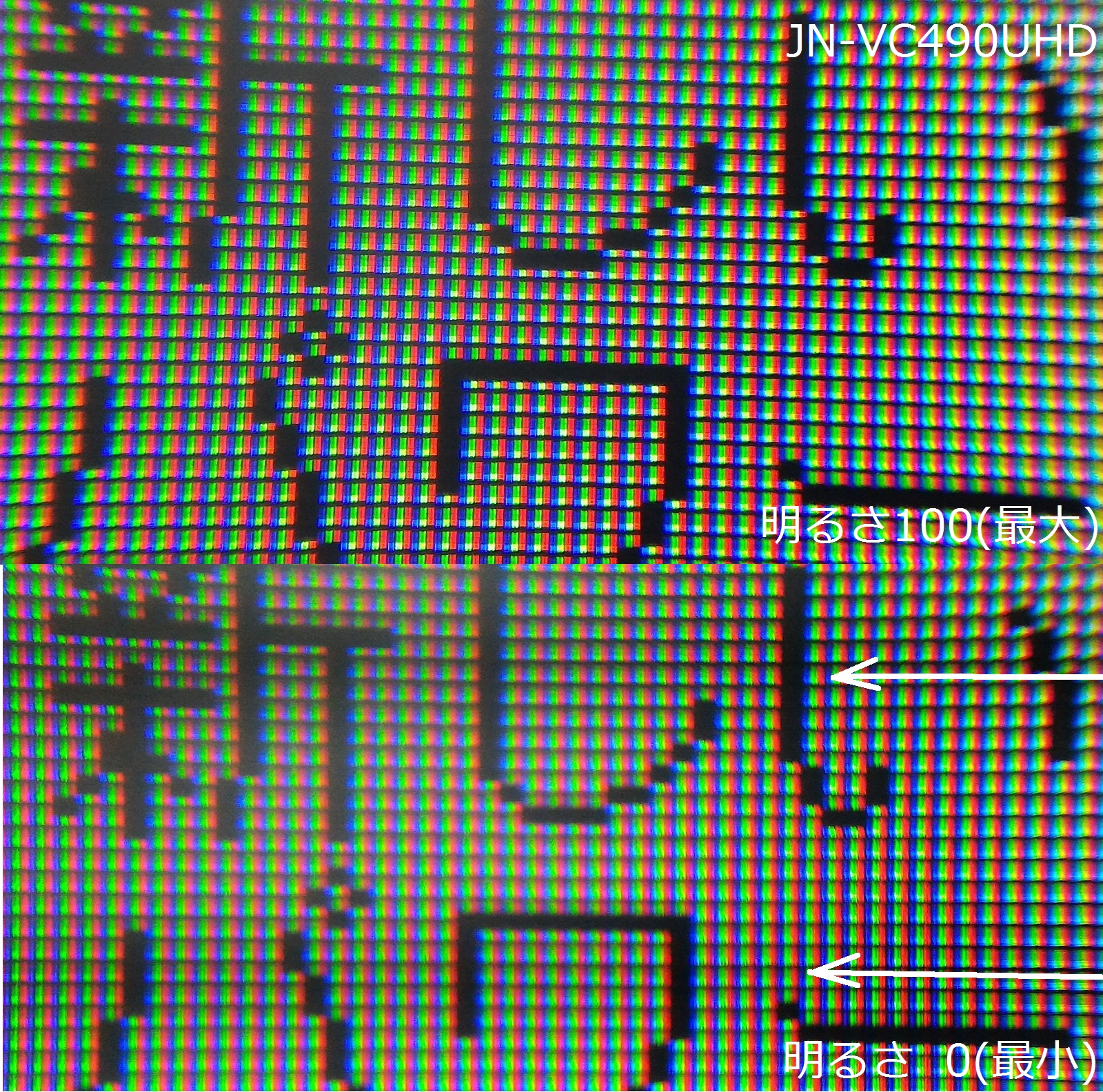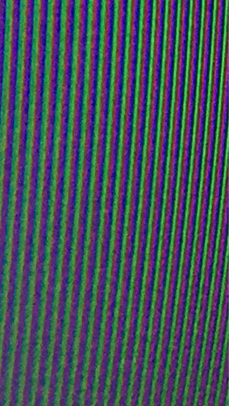 スマホ画面越しだと、明るさ100以外ではCRT撮影時に出るような走査線状の縞模様が発生する