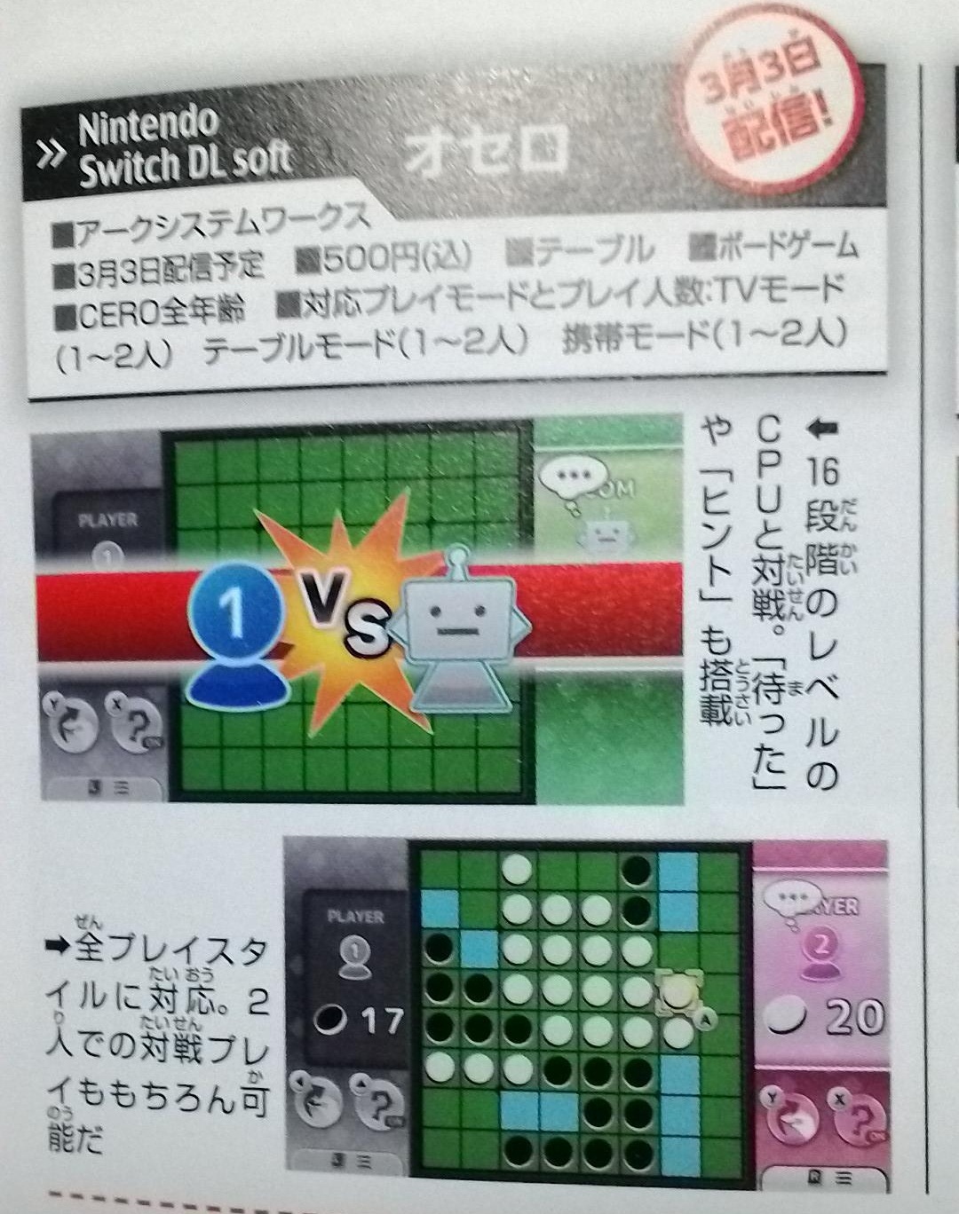 イカやマリオカートに加えてオセロも遊べるとか