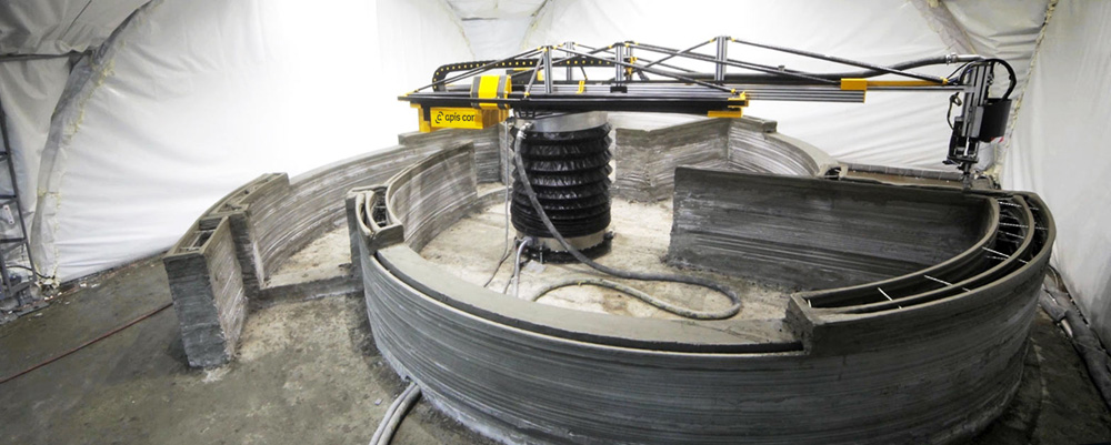 これからは建築現場に重機ではなくパーツ単位にバラした巨大3Dプリンターと