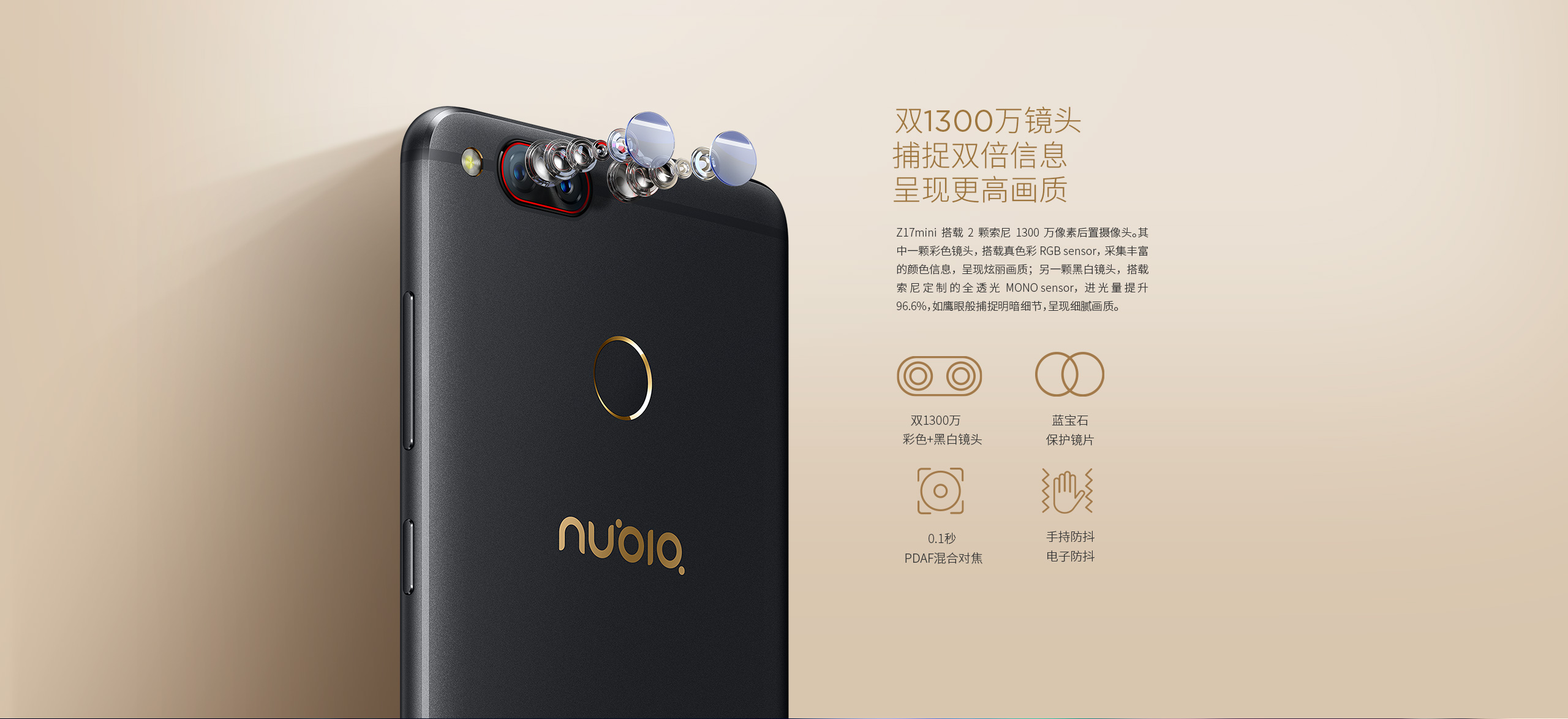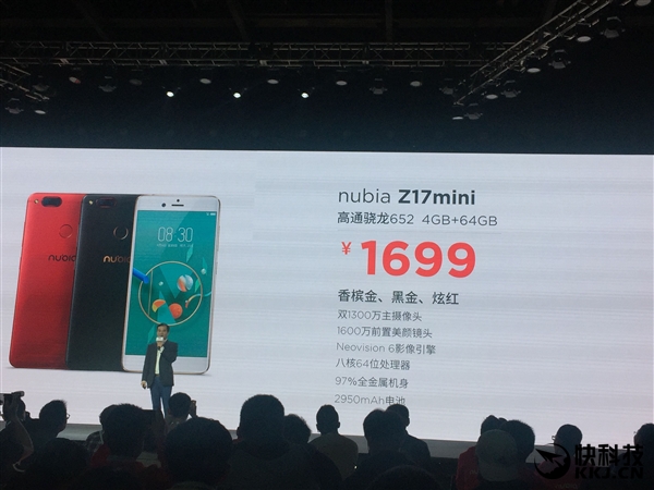「Nubia Z17 mini」のスペックは、5.2インチ(1920 × 1080・IPS)、Snapdragon 652/653、RAM 4GB/6GB、ストレージ64GB(microSDカード対応)、背面に1300万画素カメラ2つ(RGB+モノクロ・OIS)、前面に1600万画素カメラ(80度・F/2.0レンズ)、USB Type-C、指紋リーダー、2950mAhバッテリー、Android 6.0 + Nubia UI 4.0などを搭載。
