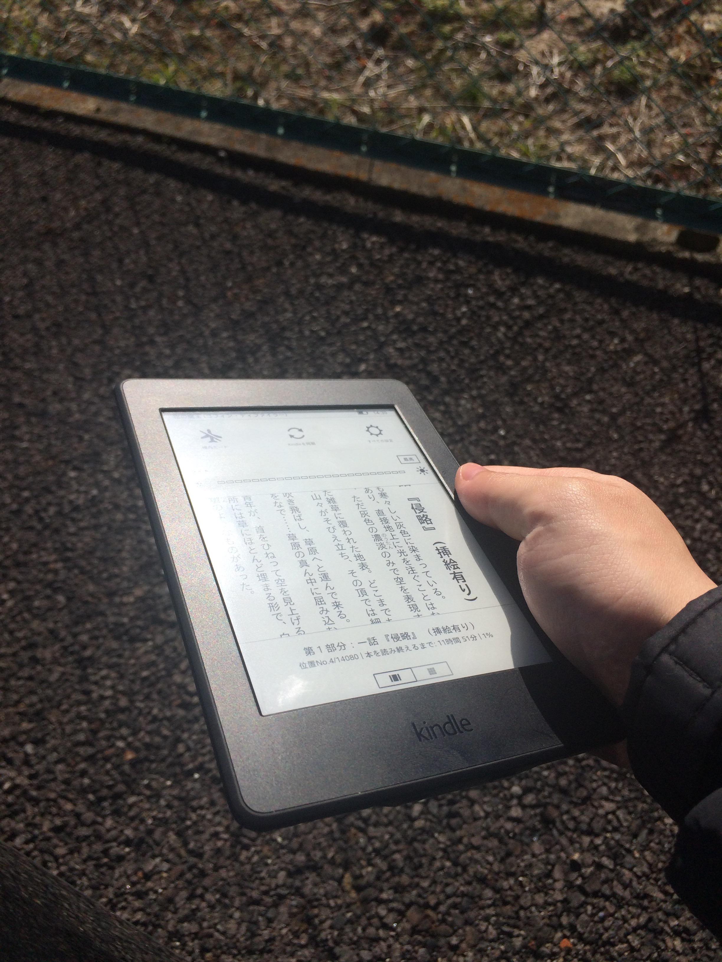 Kindleは逆に画面がハッキリするから外でも綺麗に見れる