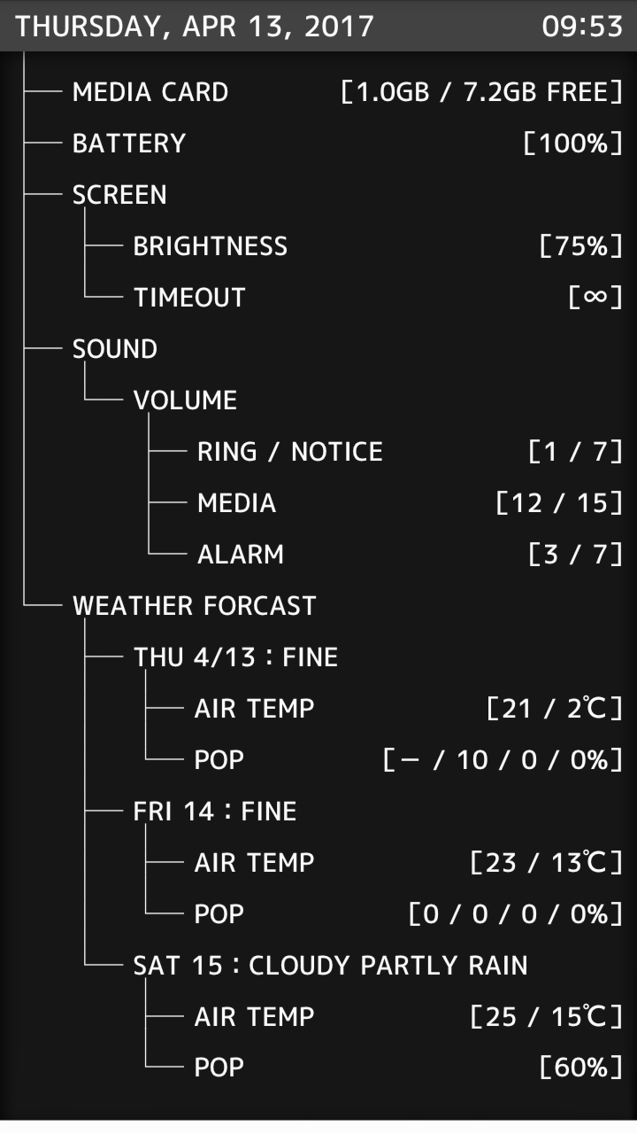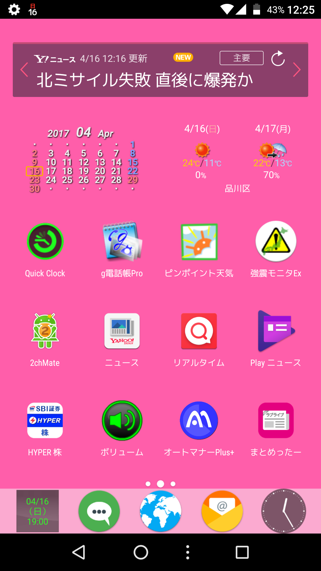下部のウィジェット?のThursdayの文字色が少し見辛いのと、バッテリーウィジェットのピンクが凄く見辛いのが残念な感じ