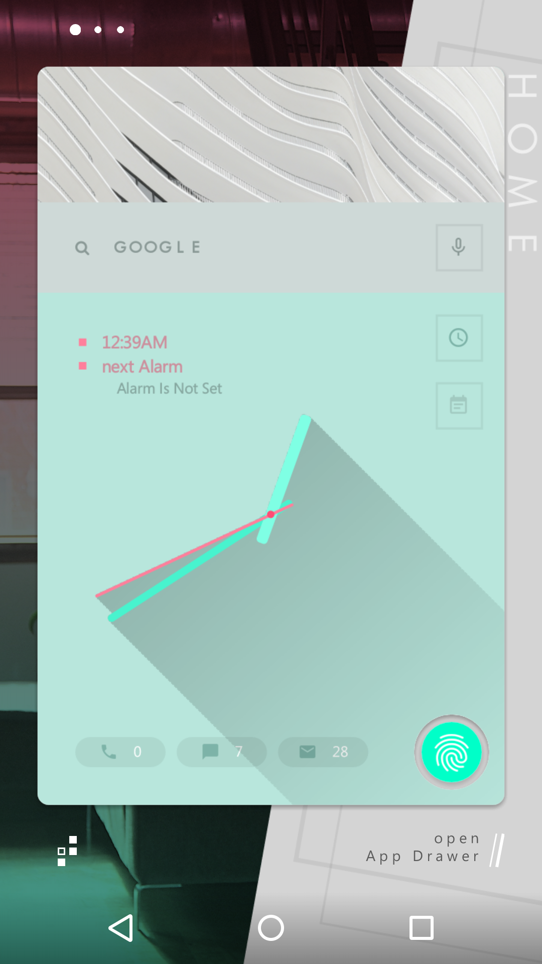 立体的な時計、マテリアルなアイコン、浮いてるナビゲーションバーの三点セットだな
