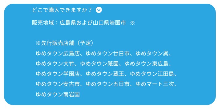 - 販売地域:広島県および山口県岩国市