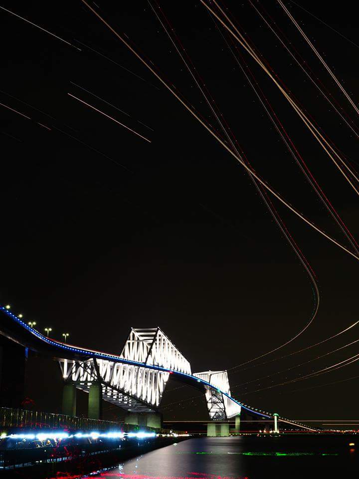 光の線は航空機の軌跡か