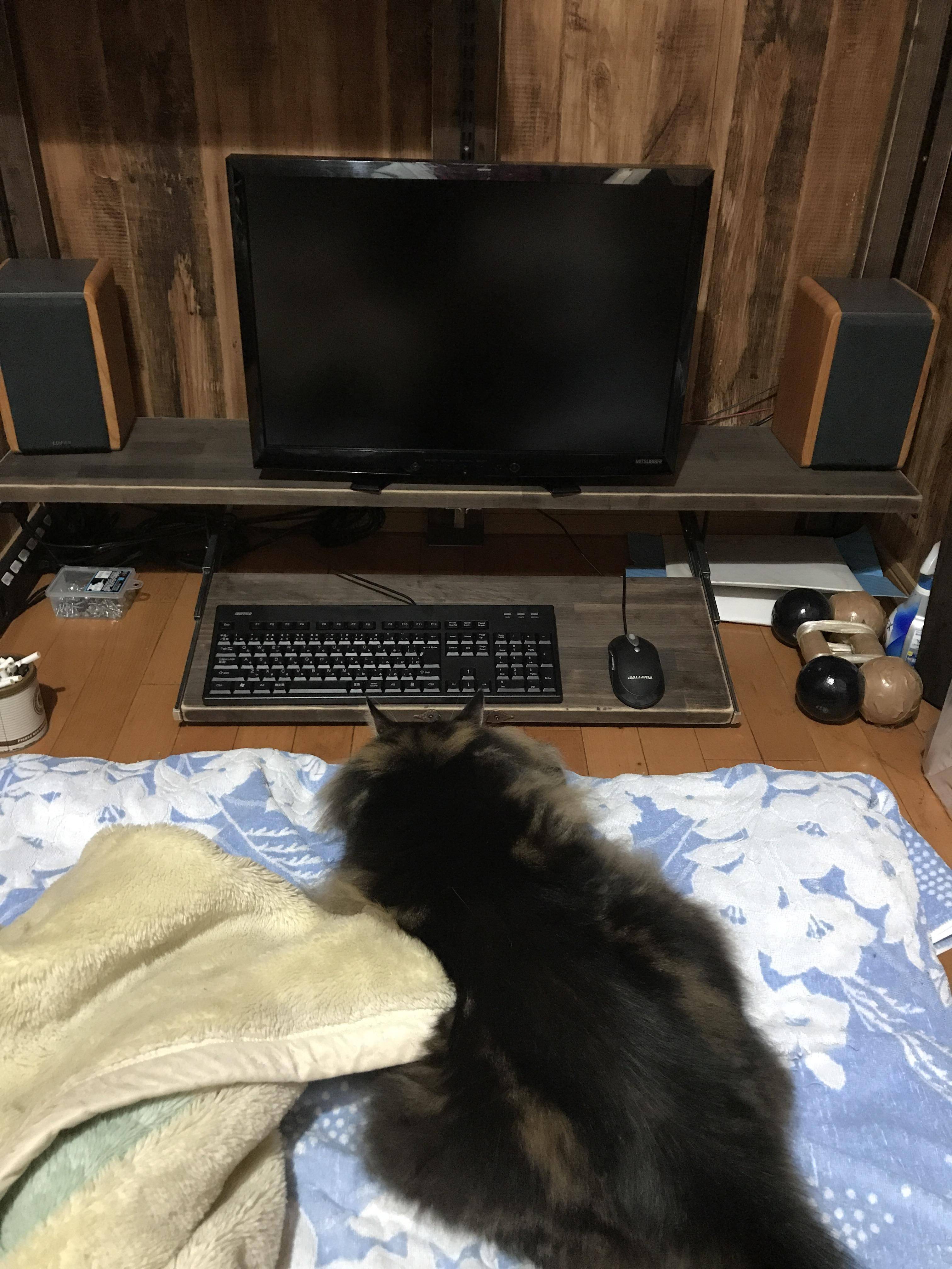 寝ながらにしてはマウスキーボードの位置が床から少し上なのが気になる