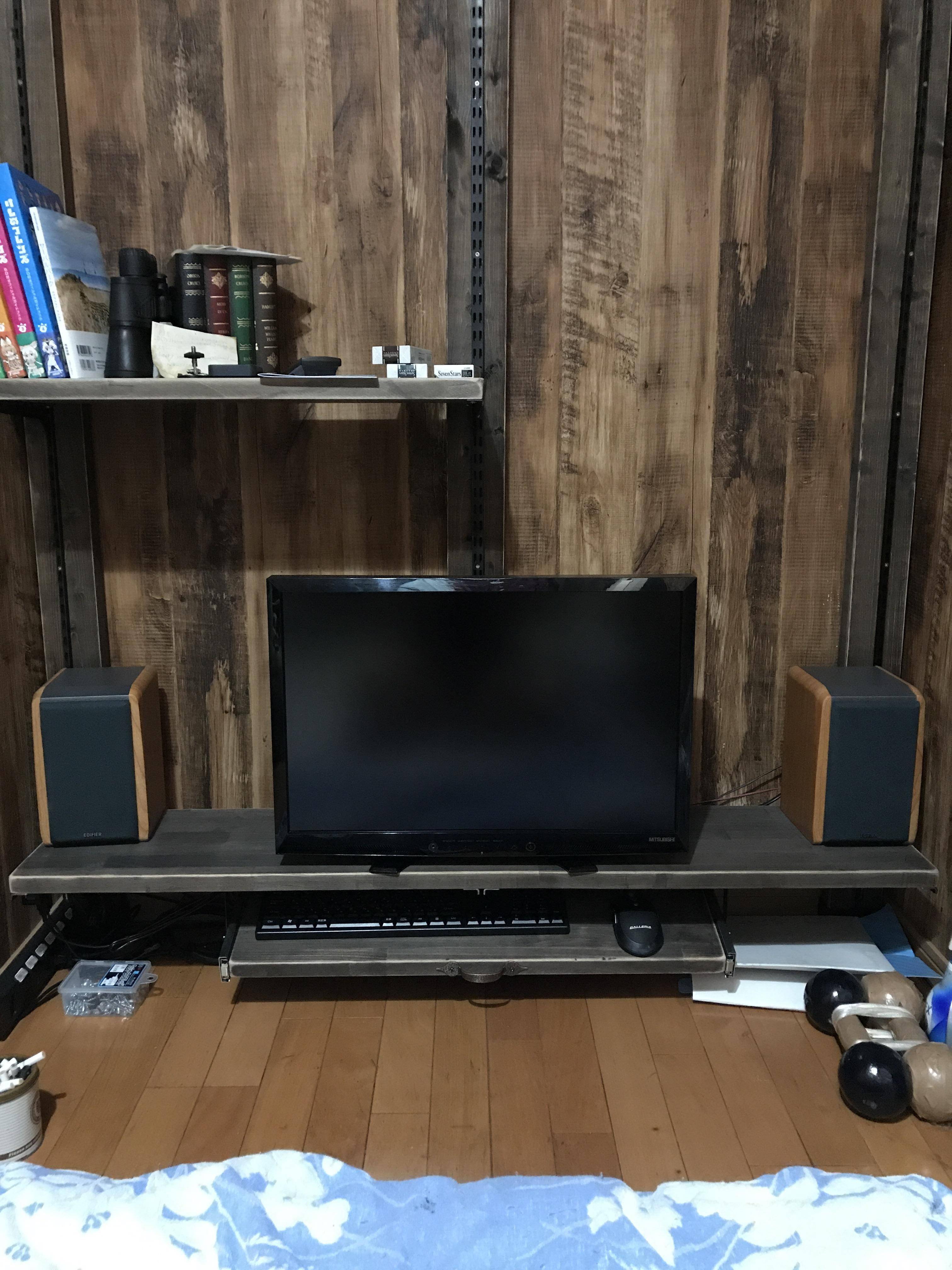 あごめんコレ左は32インチTVで右のモニタは手前のテーブルにアーム付けてる27インチなのよw