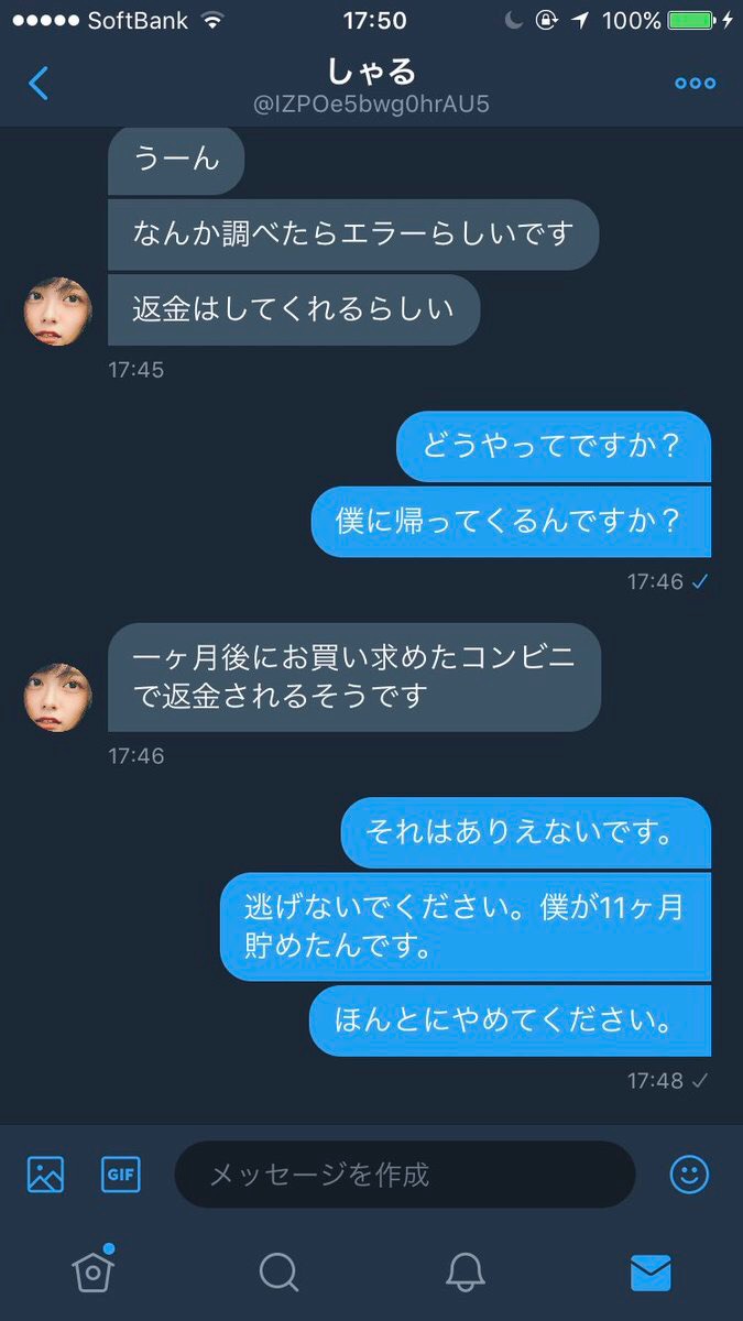 この騙してる方もわざわざ買える分けねーだろとか返信しとるせいで、被害届でて捕まったら詐欺罪確定で言い訳のしようないアホやしな