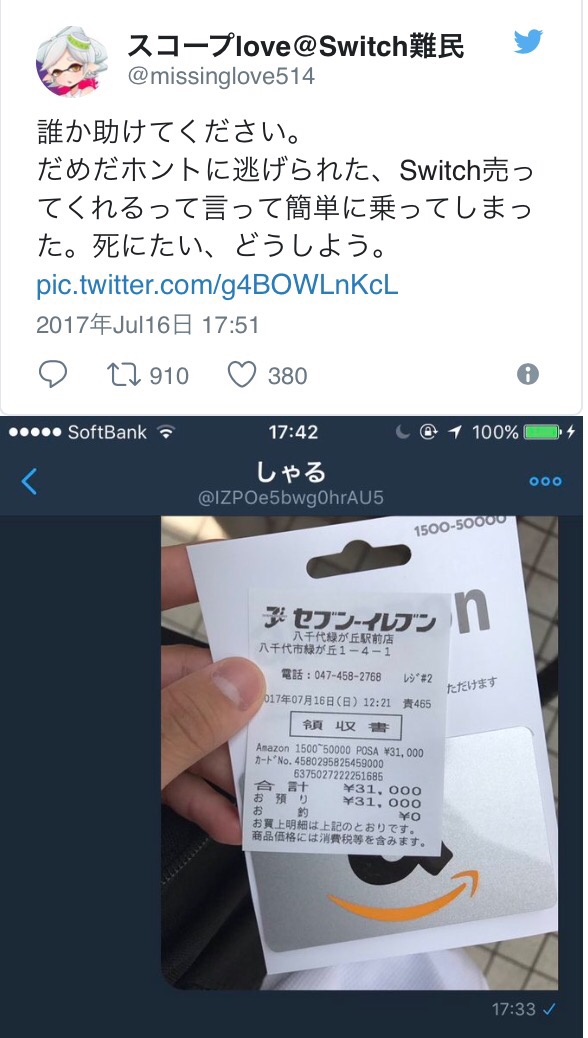 これ「取り戻しましたよ!」って言って更にアマギフも詐欺られそう