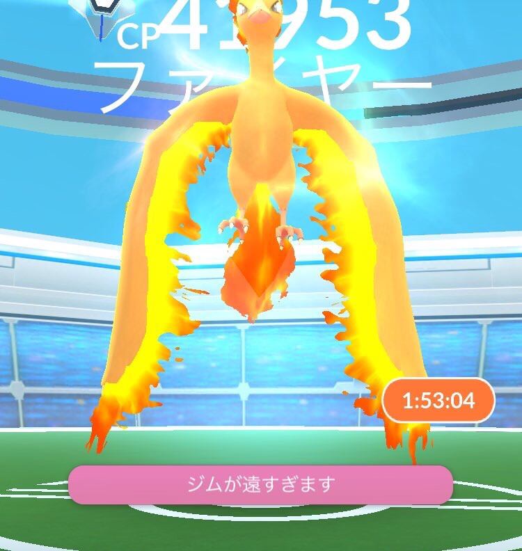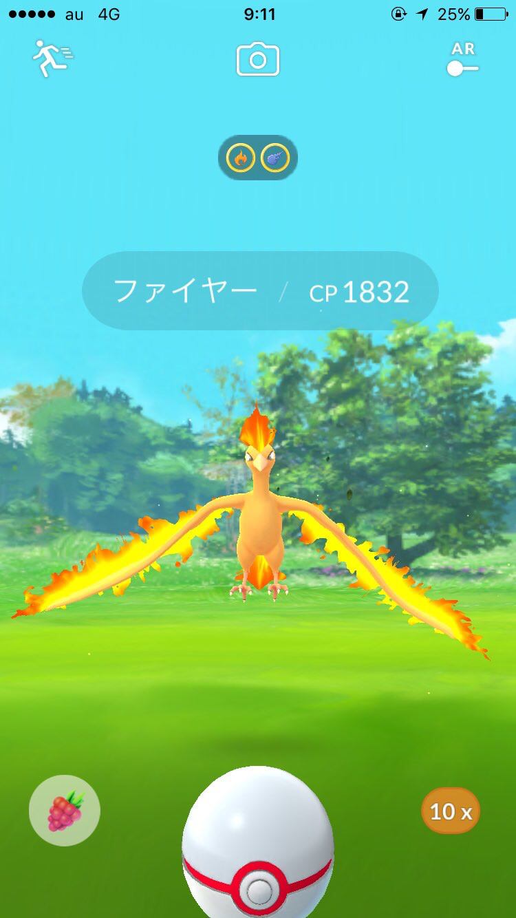 伝説のポケモン、ファイヤーが出現した模様です!周りのトレーナーを誘って伝説のポケモンとのレイドバトルに挑もう!