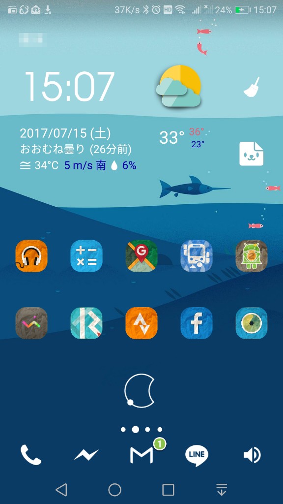 でもそれ以外は壁紙と天気ウィジェットも雰囲気合ってるしまとまってていいね